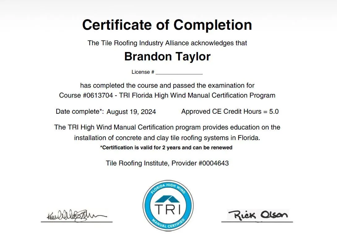• 50+ years of roofing experience on your side ranging from Concrete Tile, Asphalt Shingle, Metal Roofing and Flat/Low Slope Systems• A team built to service communities— beyond understanding your roof systems, it is as important to understand the complexities of Florida codes and laws as well as Florida Weather• A licensed, bonded and insured contractor