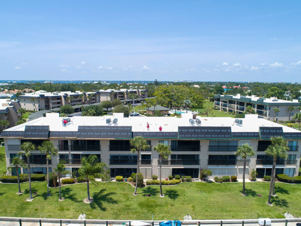 Our team evaluates the whole structure: roof geometry, deck condition, drainage and scuppers, parapet walls, ventilation paths and ponding-water risks. Then we coordinate permits and inspections required by Florida law and plan around stormy days to protect your schedule.